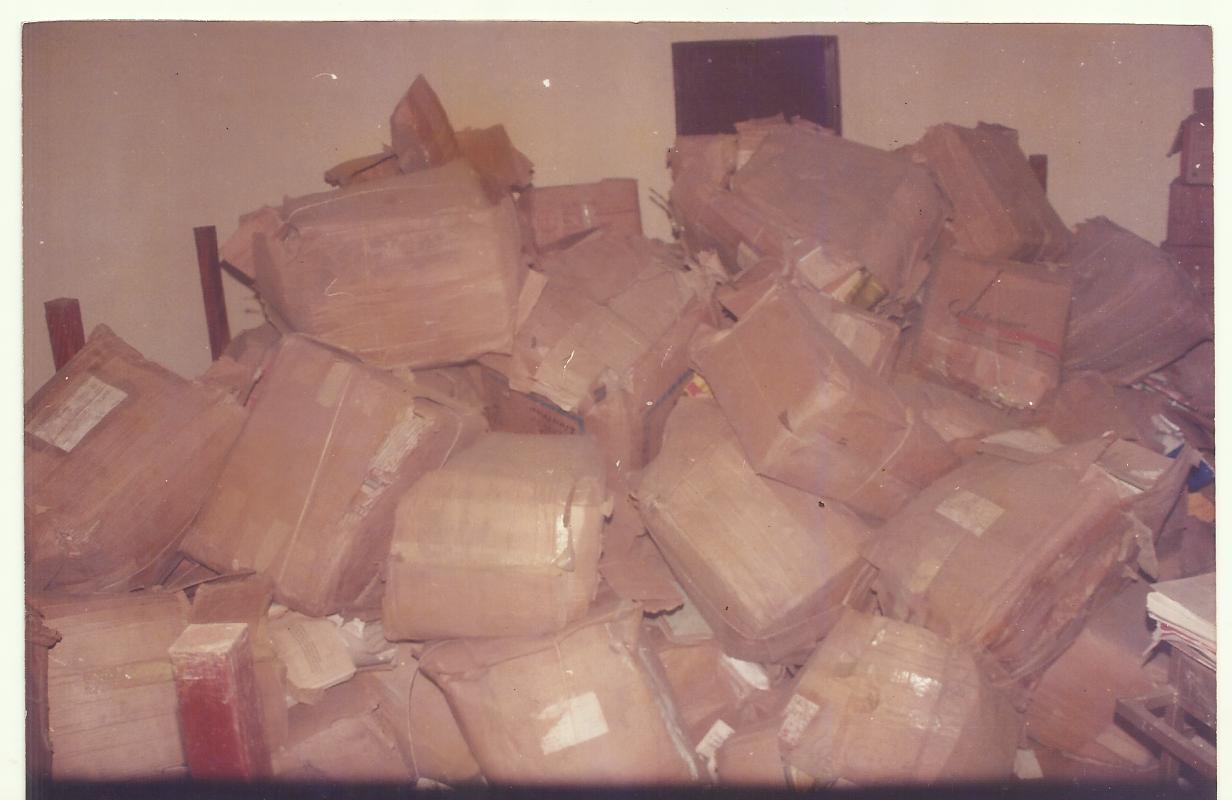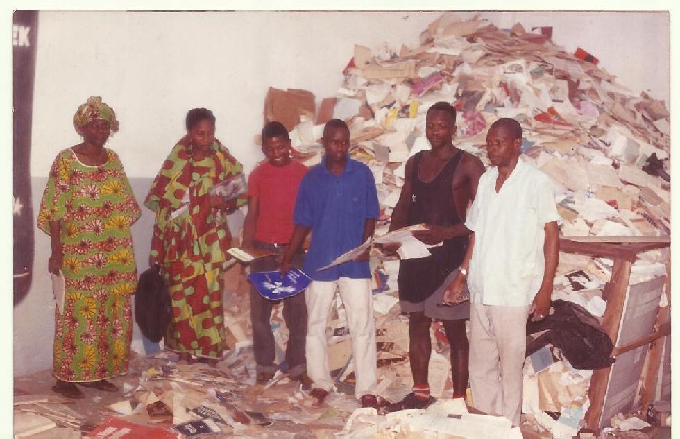 Ainsi, les fonds de la Bibliothèque nationale restèrent jetés, pêle-mêle, comme le prouvent les quelques photos que voici, en divers endroits inappropriés où ils seront pillés à volonté : au 2e étage de l’imprimerie Patrice Lumumba, à la permanence fédérale de Conakry II avant que celle-là ne devienne une piscine privée, l’actuelle Marocana, et au Palais du Peuple. Ils ont été livrés aux pluies torrentielles de Conakry et aux mammifères rongeurs pendant 12 ans. Cette criminelle action ne suscita aucune réaction, même de la part des cadres des départements ministériels de l’Education.