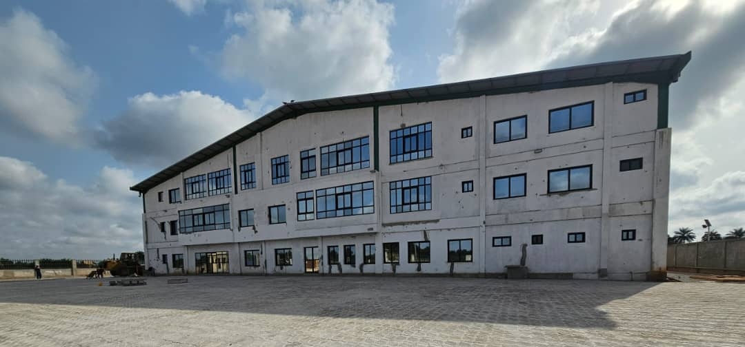 Située à 22 km de la route nationale Forécariah-Sierra Leone, l’usine s’étend sur 20 hectares, dont 8 000 m² sont bâtis. Elle comprend deux lignes de production pour des bouteilles de 6 kg et 12,5 kg, avec la possibilité d’ajouter une troisième ligne.
