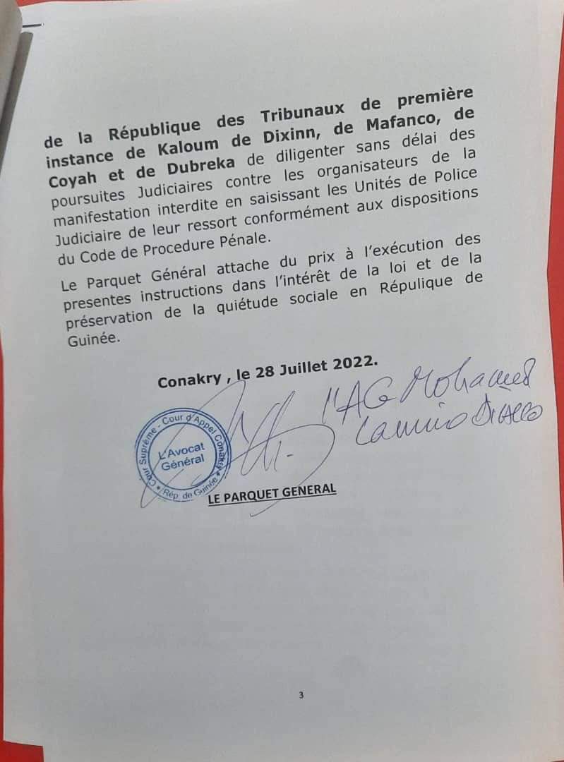 Minisfestations du 28 juillet; Le parquet général de Conakry ordonne des poursuites judiciaires contre les organisateurs