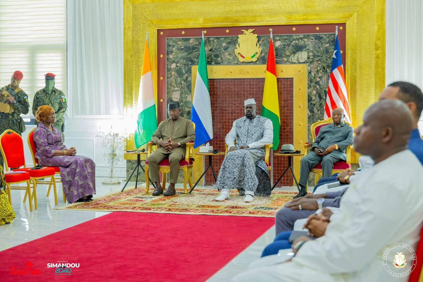 Sous la présidence de Son Excellence le Président Mamadi DOUMBOUYA, ce sommet a réuni Son Excellence Joseph Nyumah Boakai, Président de la République du Libéria, et Son Excellence Julius Maada Bio, Président de la République de Sierra Leone, ainsi que la ministre ivoirienne des Affaires étrangères, de l’Intégration africaine et de la Coopération internationale Mme Nialé Kaba, envoyée spéciale du Président ivoirien Alassane Ouattara, en qualité de pays témoin.
