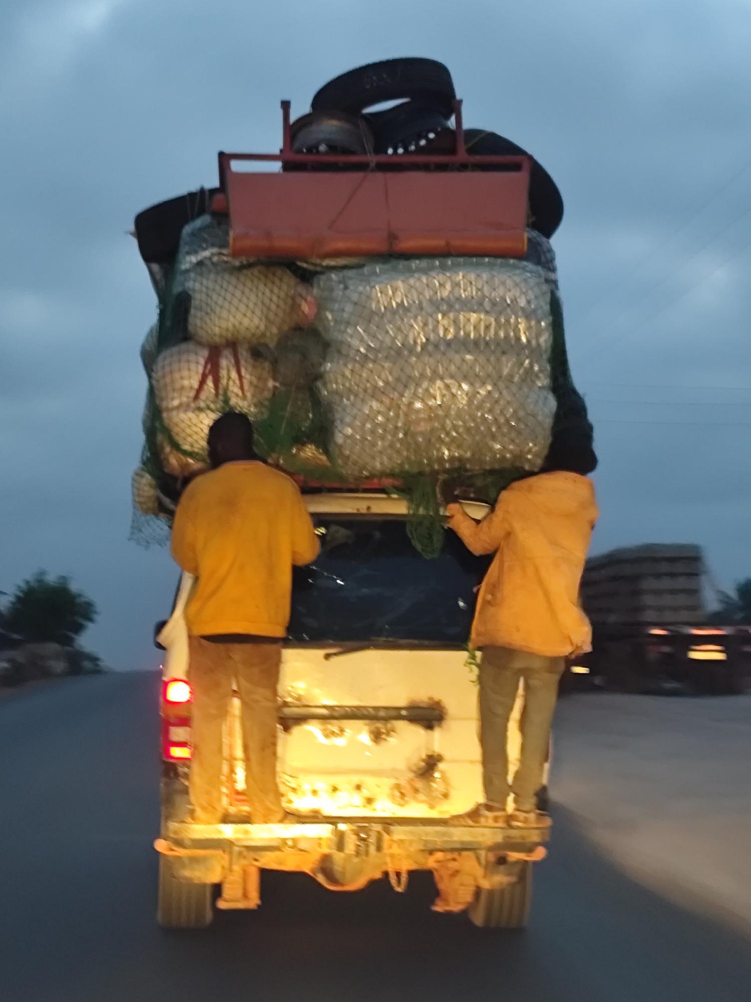 Sur cette route, qui devrait être un axe structurant du pays, l’anarchie règne en maître. Des minibus surchargés, souvent non immatriculés, roulent à tombeau ouvert, leurs apprentis suspendus à l’arrière comme s’ils défiaient la gravité. Lorsqu’ils dépassent les autres véhicules, l’impression qu’ils vont vous percuter de plein fouet est constante.