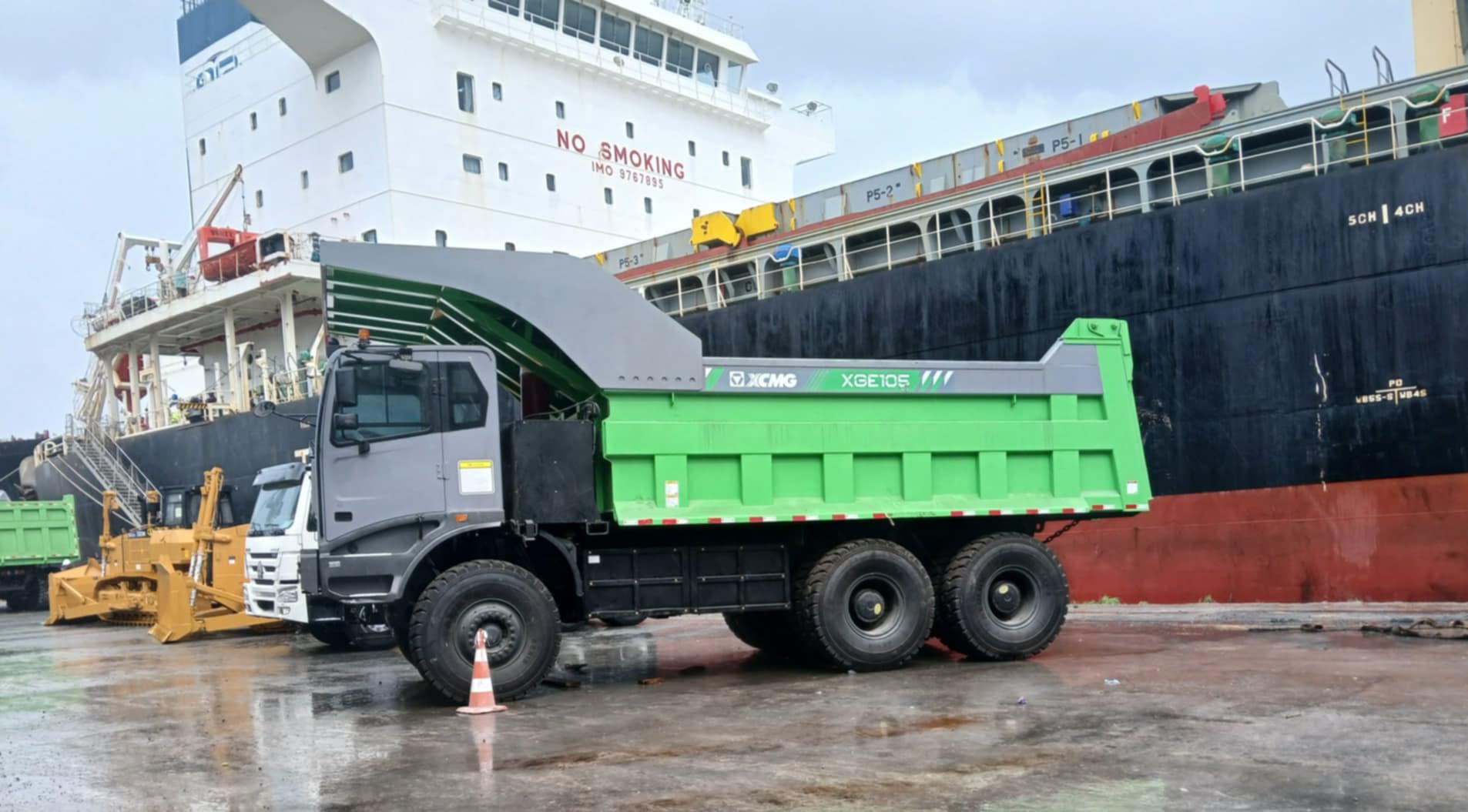 Ce sont plusieurs camions électriques, en grande partie sur commande, qui ont été débarqués au Port autonome de Conakry ce 17 juillet 2024, reçus par Xcmg, une entreprise chinoise.
