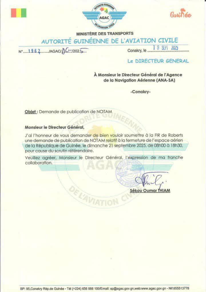 Référendum en Guinée : L'espace aérien fermé